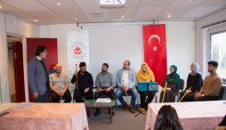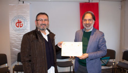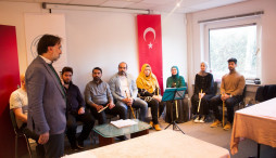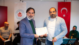 Vakfımız sanat merkezinde eylül ayından bu yana devam eden İslam sanat kurslarına katılan kursiyerlerimiz katılım belgelerini aldılar. Ney kursu öğrencilerinin tarafından hazırlanan ney dinletisinin ardından ney, Osmanlıca, filografi, ebru ve kaligrafi kurslarına katılan kursiyerlerimize katılım belgelerini Kopenhag Din Hizmetleri Müşaviri Hüseyin Gündoğar takdim etti. Katılımın yoğun olduğu belge takdim töreni ardından hep birlikte yapılan iftar ile program son buldu.