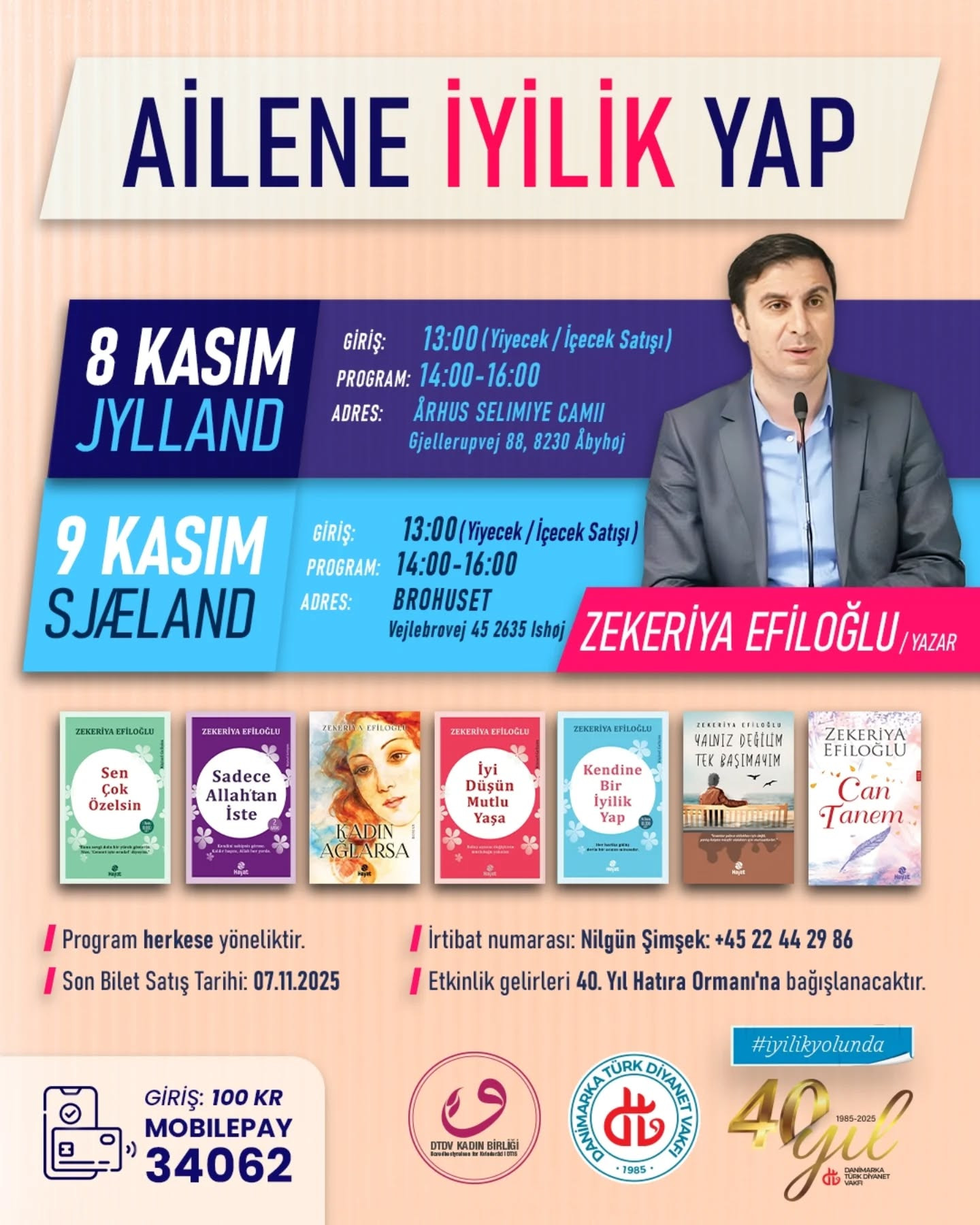 Danimarka Türk Diyanet Vakfı *Kadın Birliği* tarafından düzenlenen, değerli yazar Zekeriya Efiloğlu'nun "Ailene İyilik Yap" konulu *konferansına* sizleri bekliyoruz.