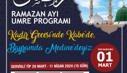 Mekke ve Medine'de Ramazan ayının manevi atmosferini yaşamak isteyen kardeşlerimizi, 18.000 kron'dan başlayan fiyatlarla düzenlediğimiz umre programımıza kayıt olmaya davet ediyoruz. Umre grubumuz, Ramazan ayına özel planlanan program çerçevesinde Kadir Gecesi'ni Kabe'de idrak edecek olup Ramazan Bayramı'nı ise Medine'de karşılayacaklar.